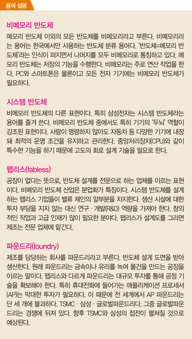 메모리가 대규모 투자가 필요한 장치산업의 성격이 강한 반면 비메모리는 고도의 기술력과 창의성을 지닌 인력이 기업의 성패를 좌우하는 기술집약 산업이다.